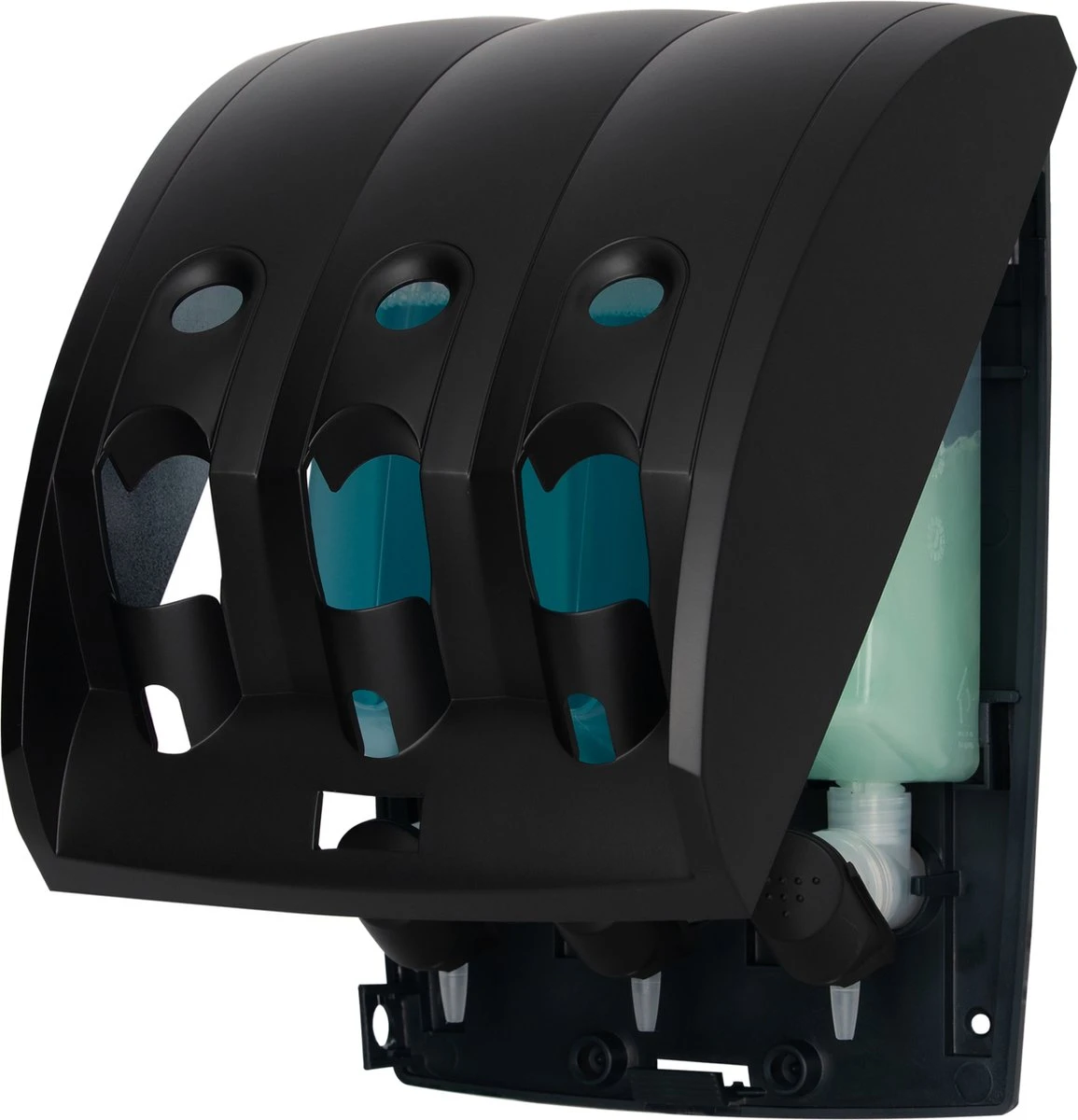 Je kunt de kamers / reservoirs uit de dispenser halen. Het dopje kan er af gehaald worden om het reservoir bij te vullen. Geschikt voor wandmontage of aan de muur.