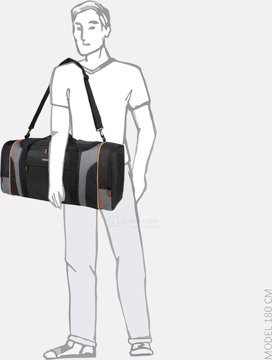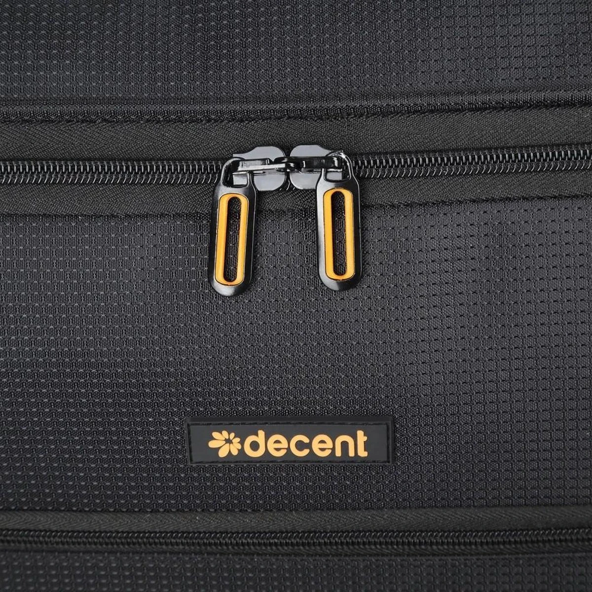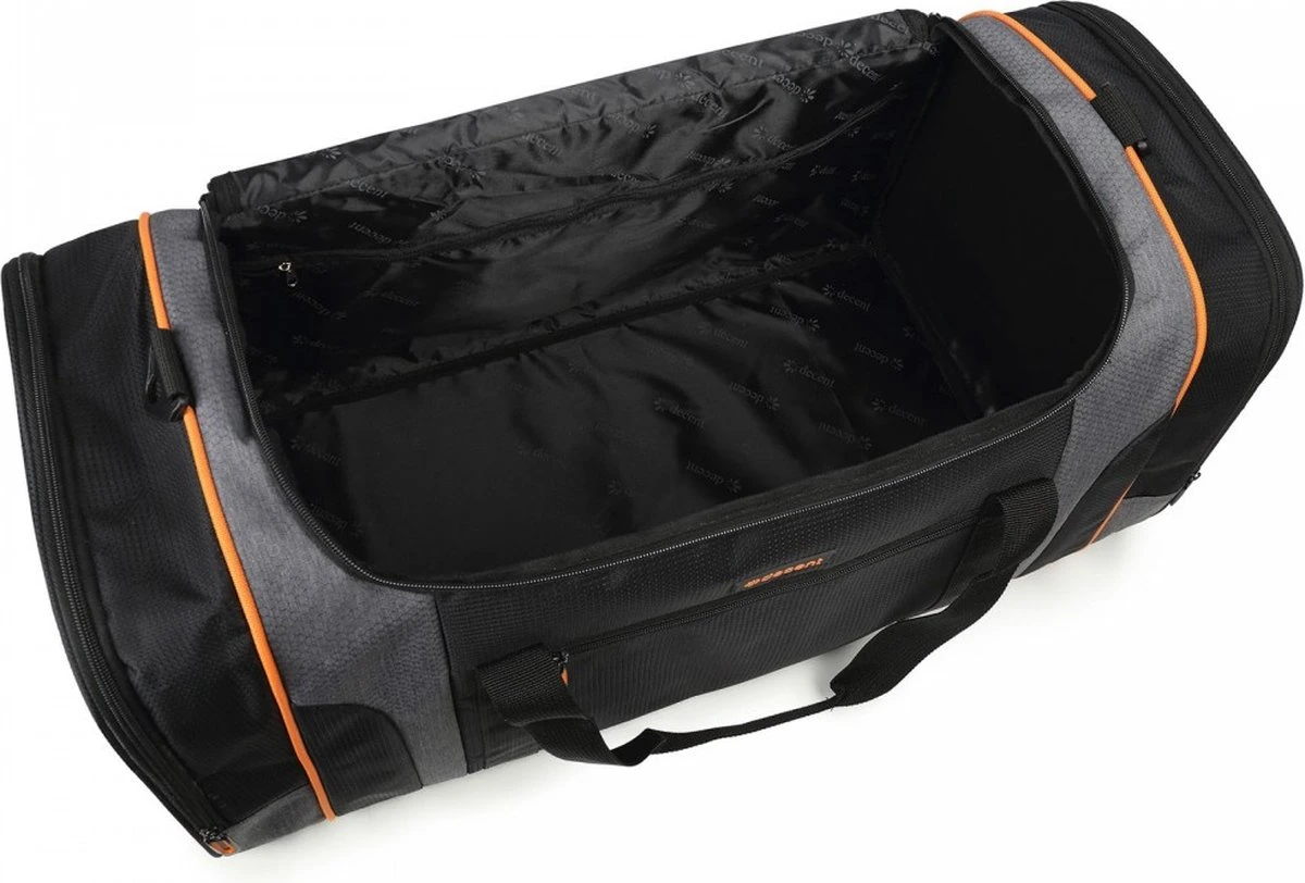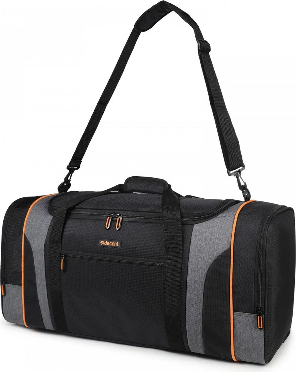 Grote reistas uit de Flexplus serie van Decent in kleur zwart met blauwe accenten. De reistas heeft twee korte draagbanden die samengebonden kunnen worden middels een band met klittenband. Het hoofdvak is te openen middels een U-vormige klep met ritssluiting. Naast het hoofdvak zit aan beide zijden een apart vak met ritssluiting. Handig voor het apart opbergen van bijv. toiletspullen of andere kleine reisaccessoires.
