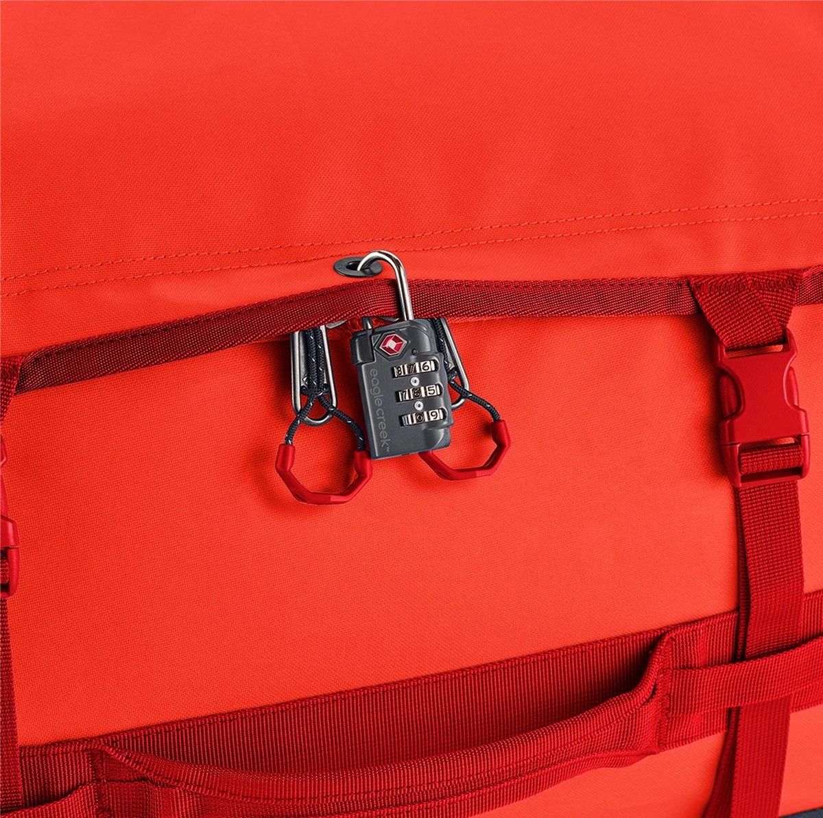 Je bagage kan eenvoudig in het hoofdcompartiment met een inhoud van 130 liter worden ingepakt. Het is zelfs mogelijk om je natte regenjas even onder de buitenste banden van de duffel te schuiven. De buitenste compressiebanden passen zich aan de inhoud van de reistas aan en houden je spullen goed bij elkaar. De ritsen zijn centraal te vergrendelen met een los verkrijgbaar slot.