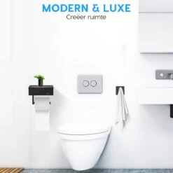 Merkloos TDR – Dubbele Toiletrol Houder – RVS – Met Geïntegreerd Goudkleurig Plankje / Planchet